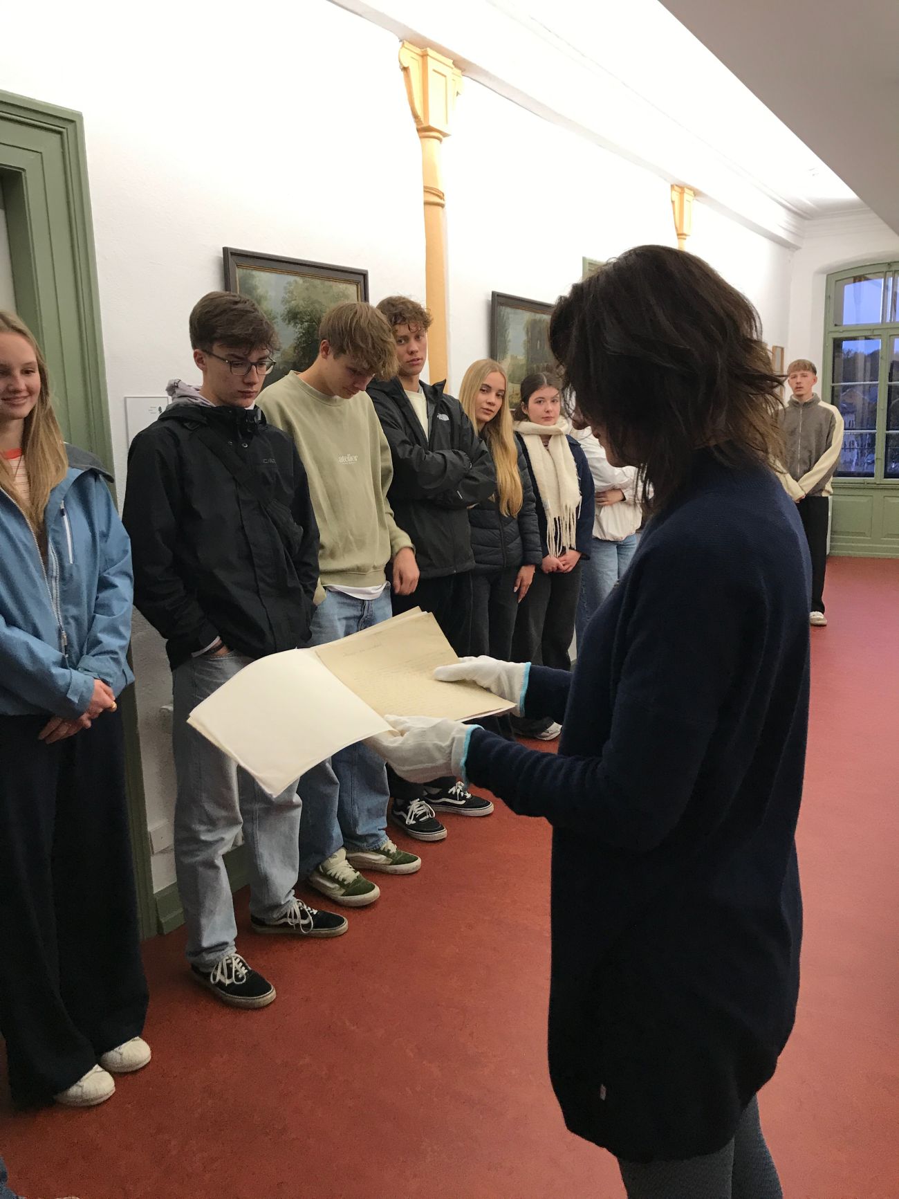 Frau Steib, bei der wir uns herzlich für den informativen Rundgang bedanken möchten, zeigte den Schülerinnen und Schülern zudem Handschriften Wielands sowie die rekonstruierte hauseigene Bibliothek des Schriftstellers. Ein Besuch in Wielands Gartenhaus rundete diese Exkursion ab.