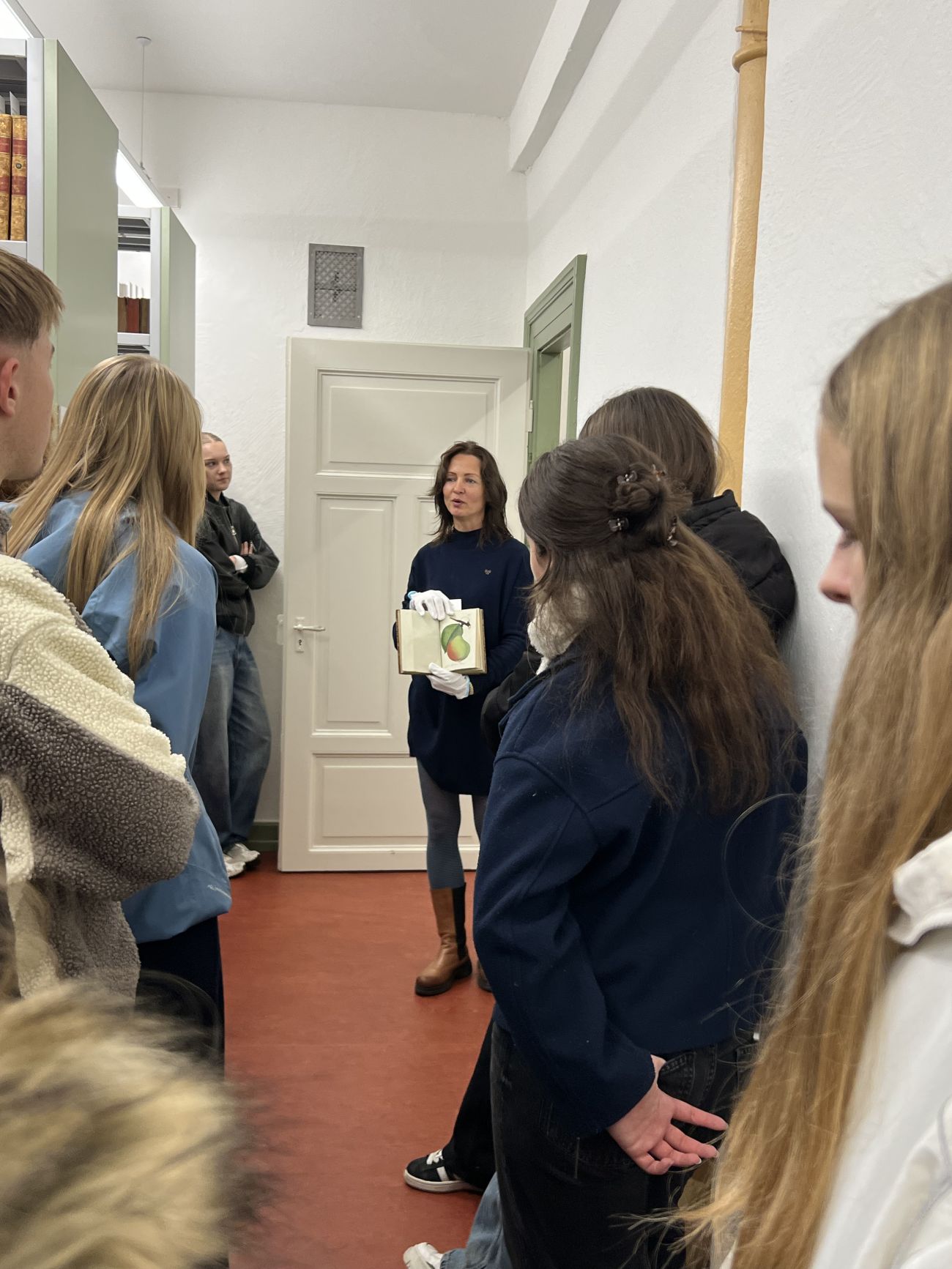 Unsere Oberstufenschüler des Deutsch LKs der Jahrgangsstufe 2 wissen nun genau, von wem die Rede ist: von keinem Geringeren als Christoph Martin Wieland, der 1733 in Oberholzheim bei Biberach geboren wurde und der auch einige Jahre in Biberach literarisch wirkte. Eine Einführung zu diesem bekannten Sohn der Stadt erhielten die angehenden Abiturientinnen und Abiturienten vor den Herbstferien bei einer Führung durch das Wieland Archiv mit Frau Steib von der Wieland Stiftung.