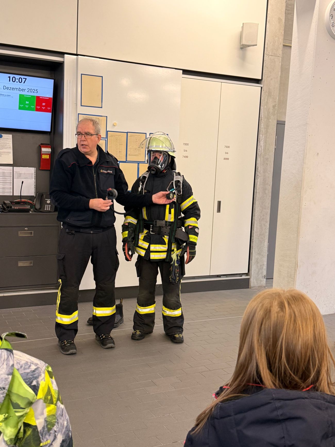 Am 15.12.2025 besuchte die Klasse 4b mit ihrer Klassenlehrerin Frau Bilgery die Feuerwehr Biberach. Die Kinder durften viele Fragen stellen und erhielten spannende Einblicke in den Alltag der Feuerwehr.