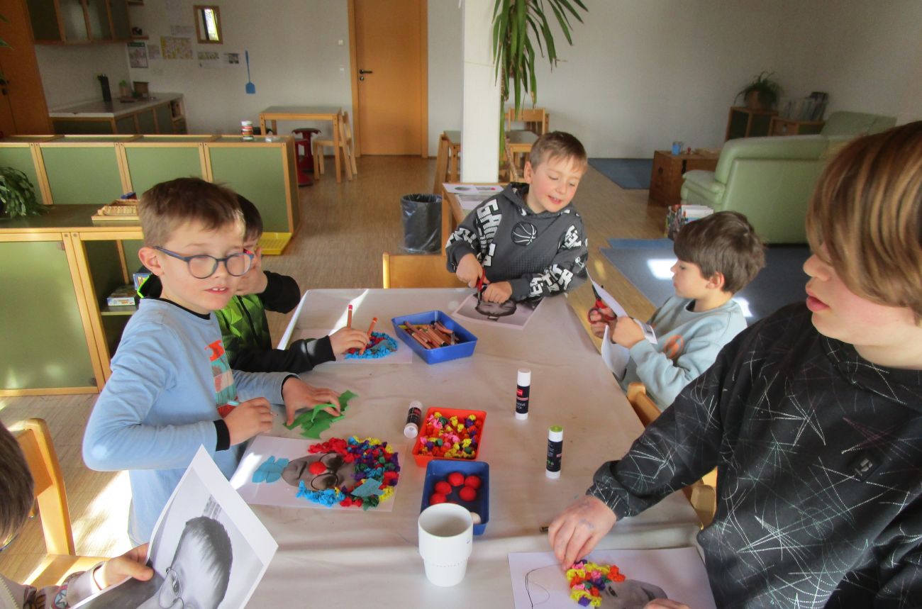 Nach dem Fotoshooting wurden unsere Bilder ausgeschnitten und aus Krepppapier „Bobbels“ gemacht.
