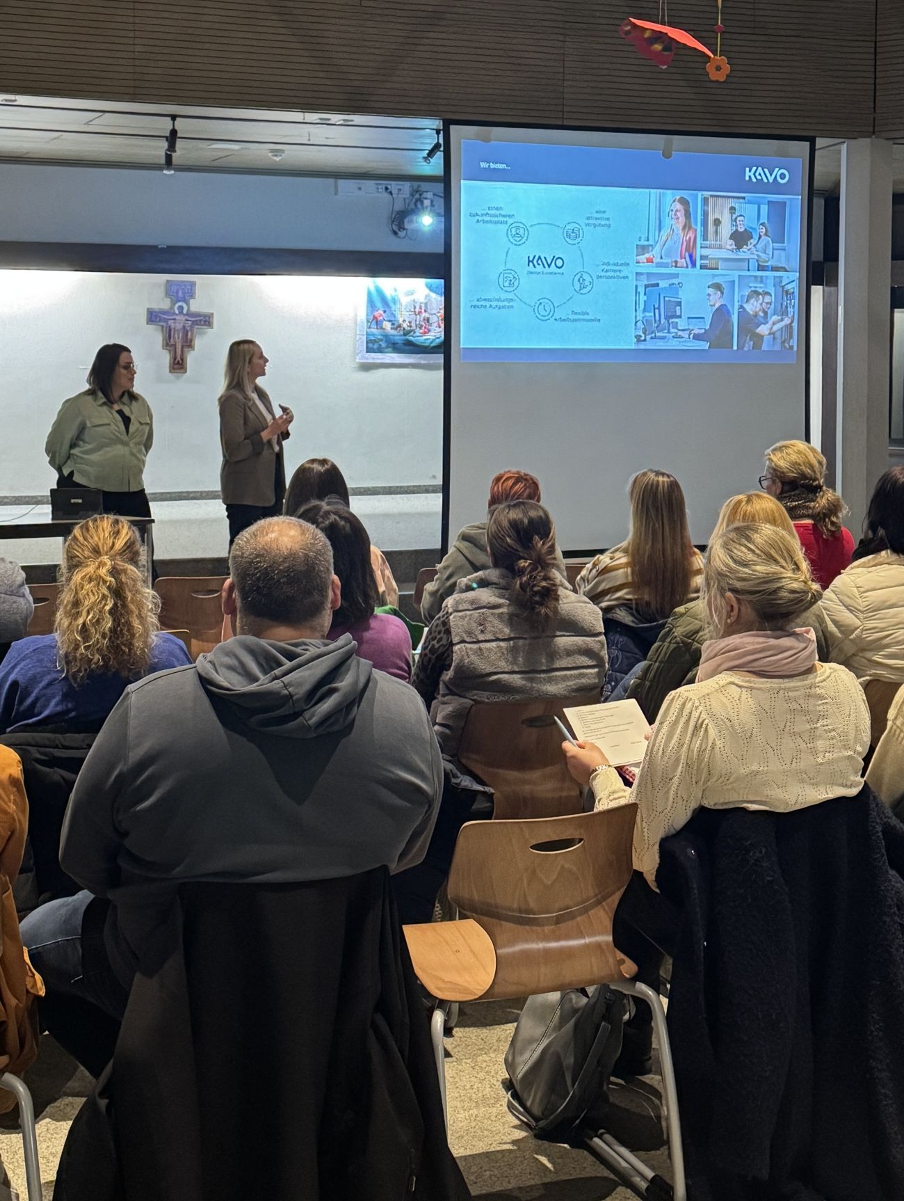 Exemplarisch für die vielen Firmen im Landkreis präsentierte unseres Bildungspartners KaVo. ihr Unternehmen, die möglichen Ausbildungsberufe, sowie verschiedene Perspektiven für den Einstieg in die Arbeitswelt. Die Eltern erhielten dabei einen ersten Einblick in betriebliche Abläufe, Anforderungen an Auszubildende und mögliche Karrierewege.
