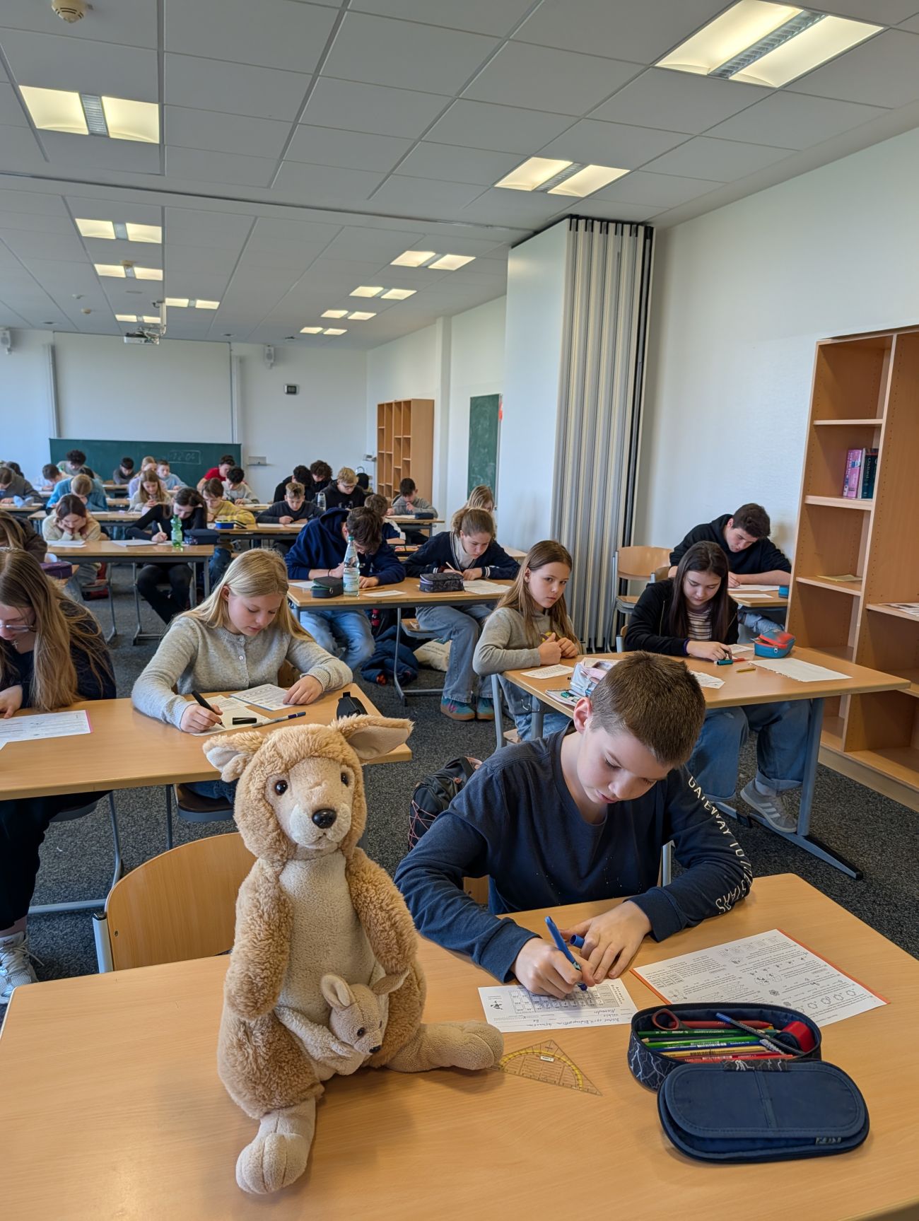 Am Donnerstag, 19. März 2026, nahmen 75 Schülerinnen und Schüler des Gymis am Känguru-Wettbewerb der Mathematik teil und stellten sich kniffligen Aufgaben. Organisiert und durchgeführt wurde er von Volker Kammerer und Ute Darlau, das Startgeld wurde vom Schulwerk bezahlt. Der Känguru-Wettbewerb ist ein landesweiter Mathematik-Wettbewerb, der logisches Denken, Problemlösefähigkeiten und räumliches Vorstellungsvermögen fördert. Ziel der Veranstaltung ist, den Spaß an Mathematik zu wecken, eigenständiges Denken anzuregen und Begeisterung für mathematische Aufgaben zu fördern. Die Bekanntgabe der Ergebnisse und somit die Aushändigung der Urkunden und Preise erfolgt am Ende des Schuljahres.
