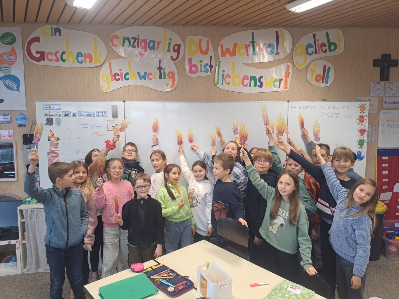 Die Kinder der 4a haben sich heute sehr über den Beginn ihres neuen VU-Themas 4.2 Feuer und Energie gefreut. Ihre Lehrerin hat sie mit Feuerfackeln aus Bonbons überrascht, die sehr lecker waren...