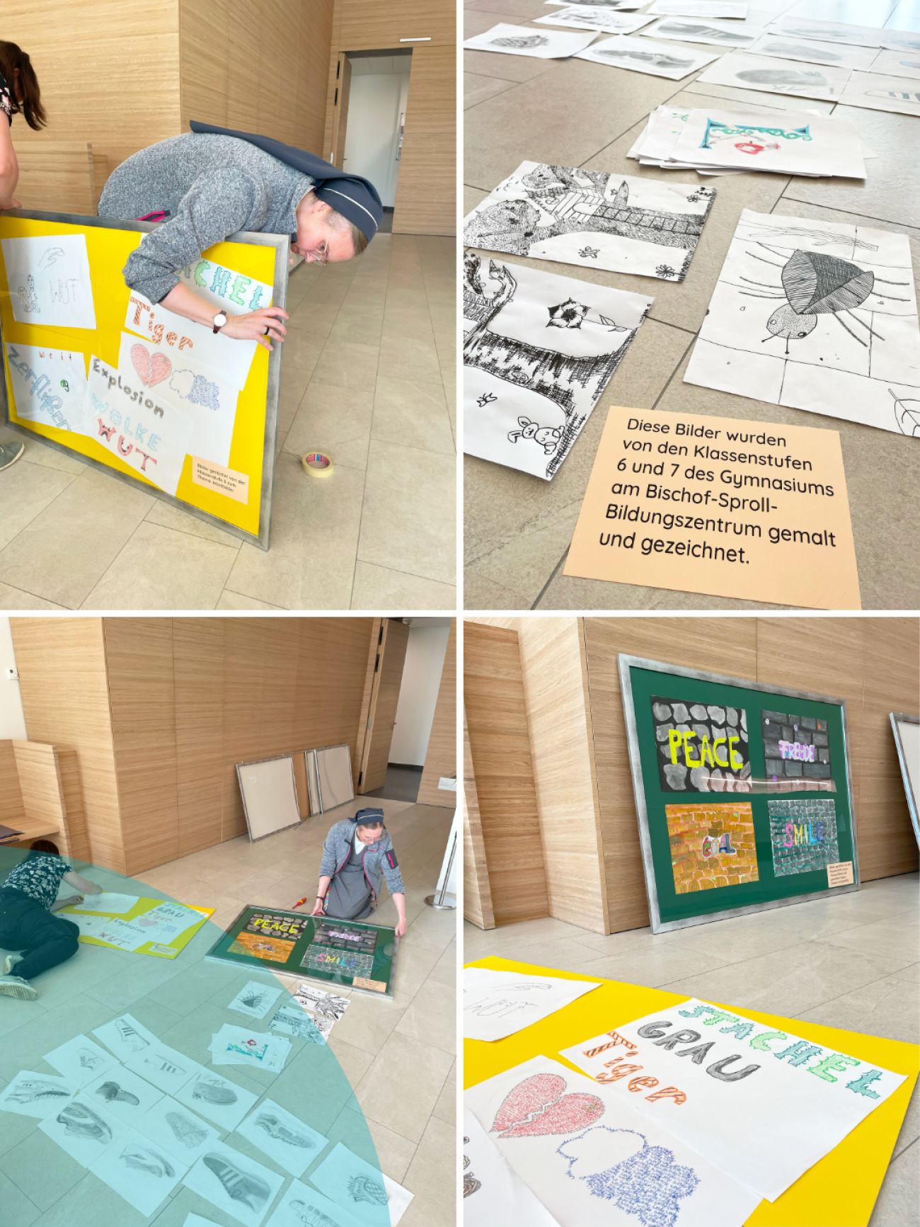 Seit dem 18. Juli 2025 schmücken im Sana Klinikum Biberach Bilder aus dem Kunstunterricht der Klassenstufen 6 und 7 unseres Gymnasiums den Gang zur Kapelle. Die Idee, die Wände, die zur Klinikkapelle führen, ansprechend und lebendig mit Kunstwerken von Schülerinnen und Schülern zu schmücken, wurde von der Klinikseelsorgerin Schwester Dorothea angeregt. Wir danken ihr für die Initiative und für die tatkräftige Unterstützung beim Einrahmen der Bilder. Die aktuellen Bilder aus dem Kunstunterricht sind noch bis Anfang Oktober zu sehen und werden dann von den Kunstarbeiten anderer Schülerinnen und Schüler des Bischof-Sproll-Bildungszentrums ausgetauscht.