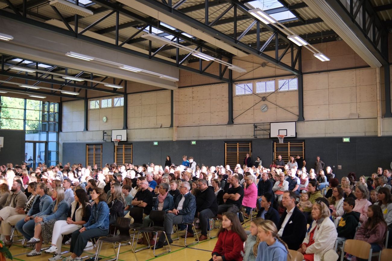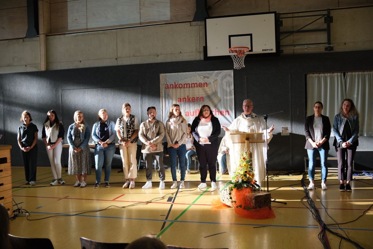 Am 16. September 2025 begrüßte das Bischof-Sproll-Bildungszentrum 165 neue Fünftklässler, die jeweils in den einzelnen Klassen ihrer Schularten starten. Der erste Schultag begann mit einem festlichen Gottesdienst, den die 6. Klassen des Gymnasiums gemeinsam mit Pfarrer Harald Stehle gestalteten. Die Feier wurde musikalisch von Schülerinnen des Gymnasiums unter der Leitung von Helmut Rosensteiner begleitet.