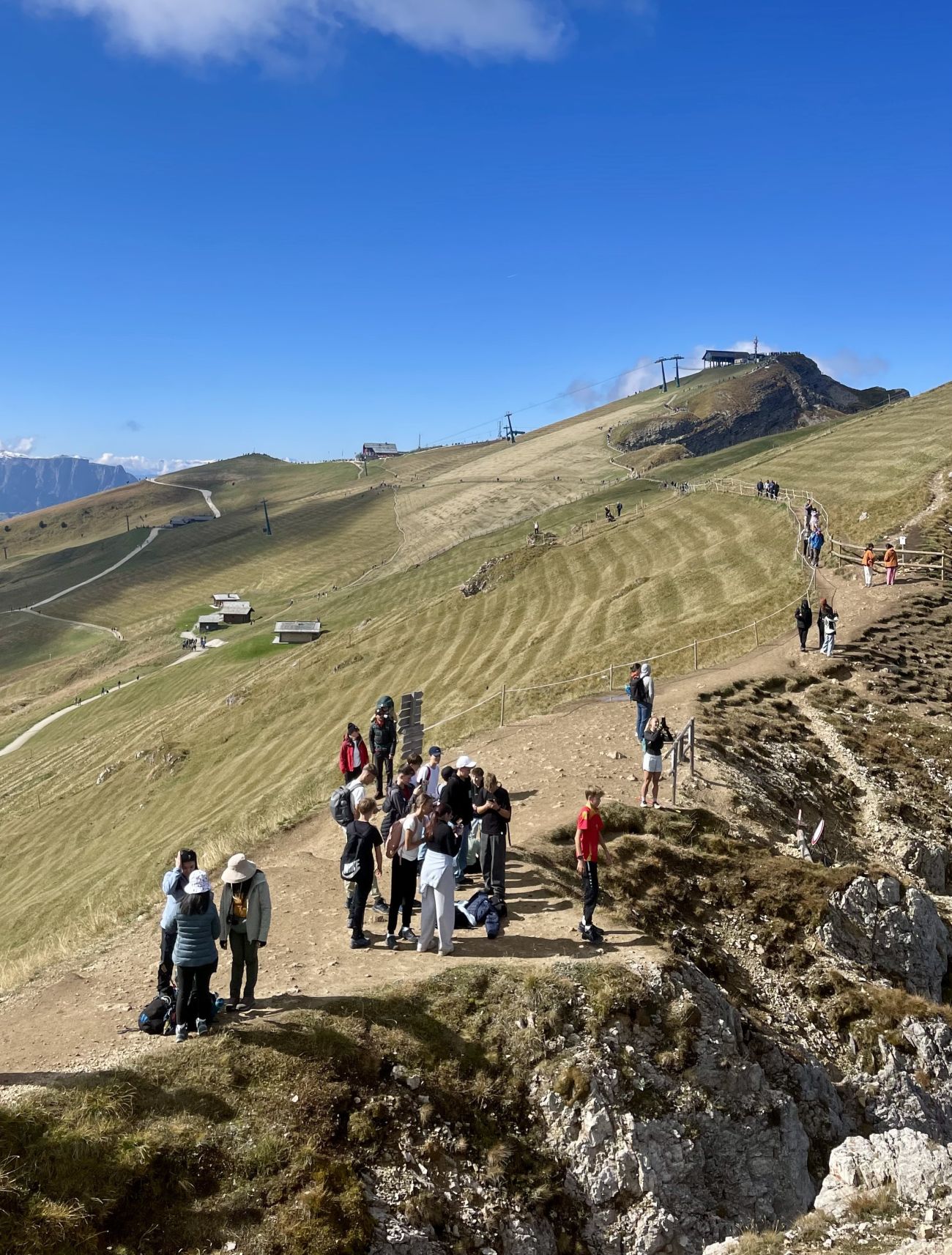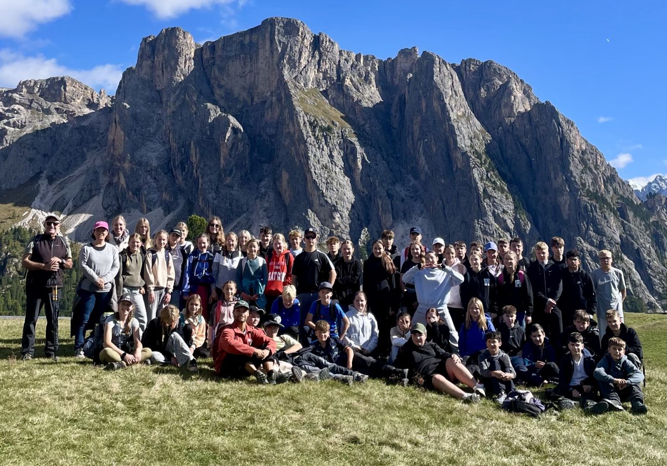 Am nächsten Morgen sind wir früh losgefahren und haben eine große Wanderung gemacht. Wir sind bis auf über 2500 m Höhe auf die Seceda gewandert, von wo wir eine wunderschöne Aussicht hatten. Hier konnten wir uns auf einer Hütte mit einem Schnitzel belohnen, bevor wir wieder nach unten gewandert sind. Am Abend haben wir Spiele gespielt, waren im Pool und auf dem Bolzplatz.