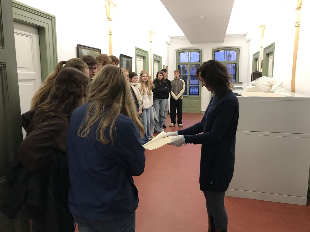 Frau Steib, bei der wir uns herzlich für den informativen Rundgang bedanken möchten, zeigte den Schülerinnen und Schülern zudem Handschriften Wielands sowie die rekonstruierte hauseigene Bibliothek des Schriftstellers. Ein Besuch in Wielands Gartenhaus rundete diese Exkursion ab.