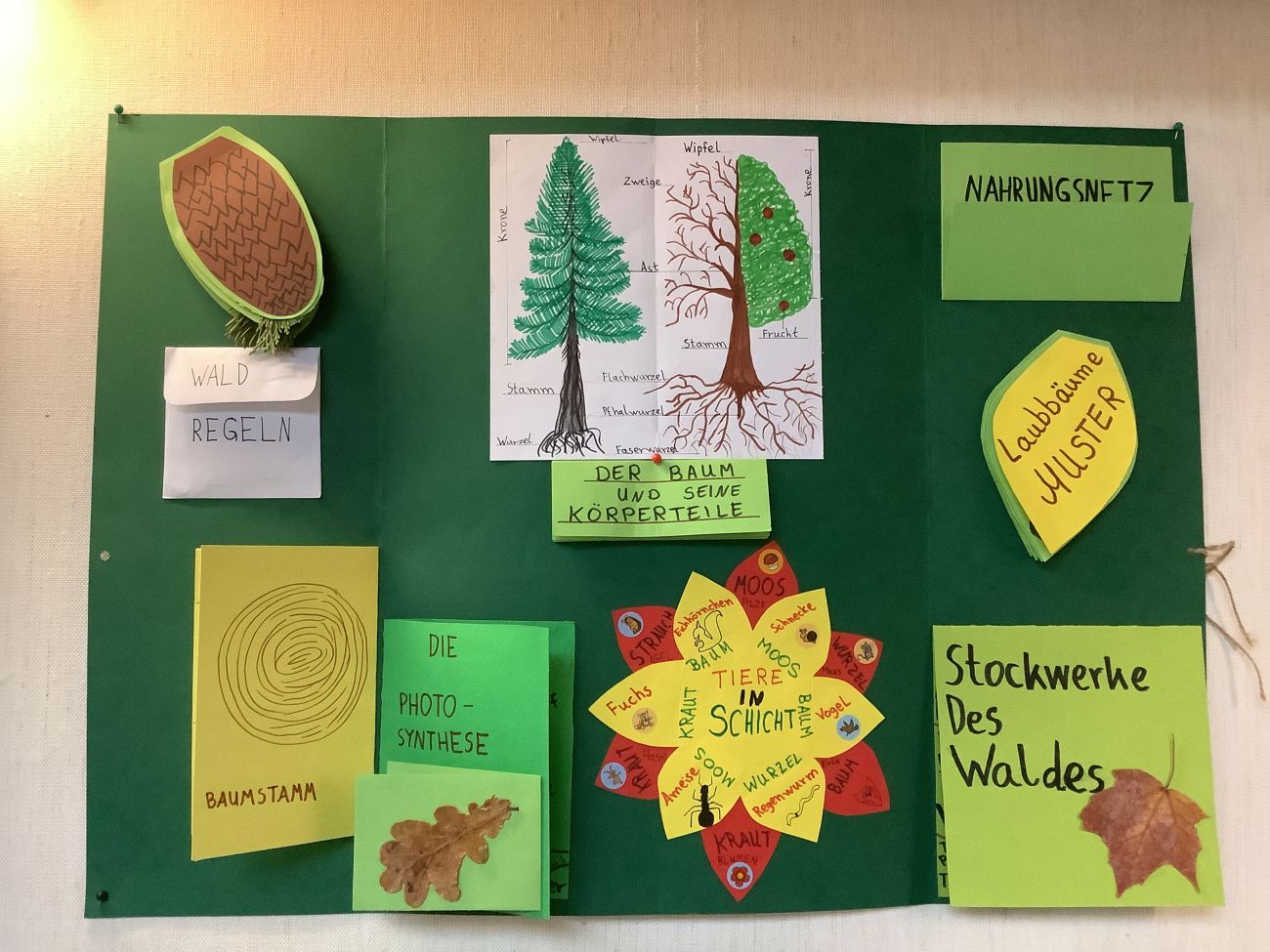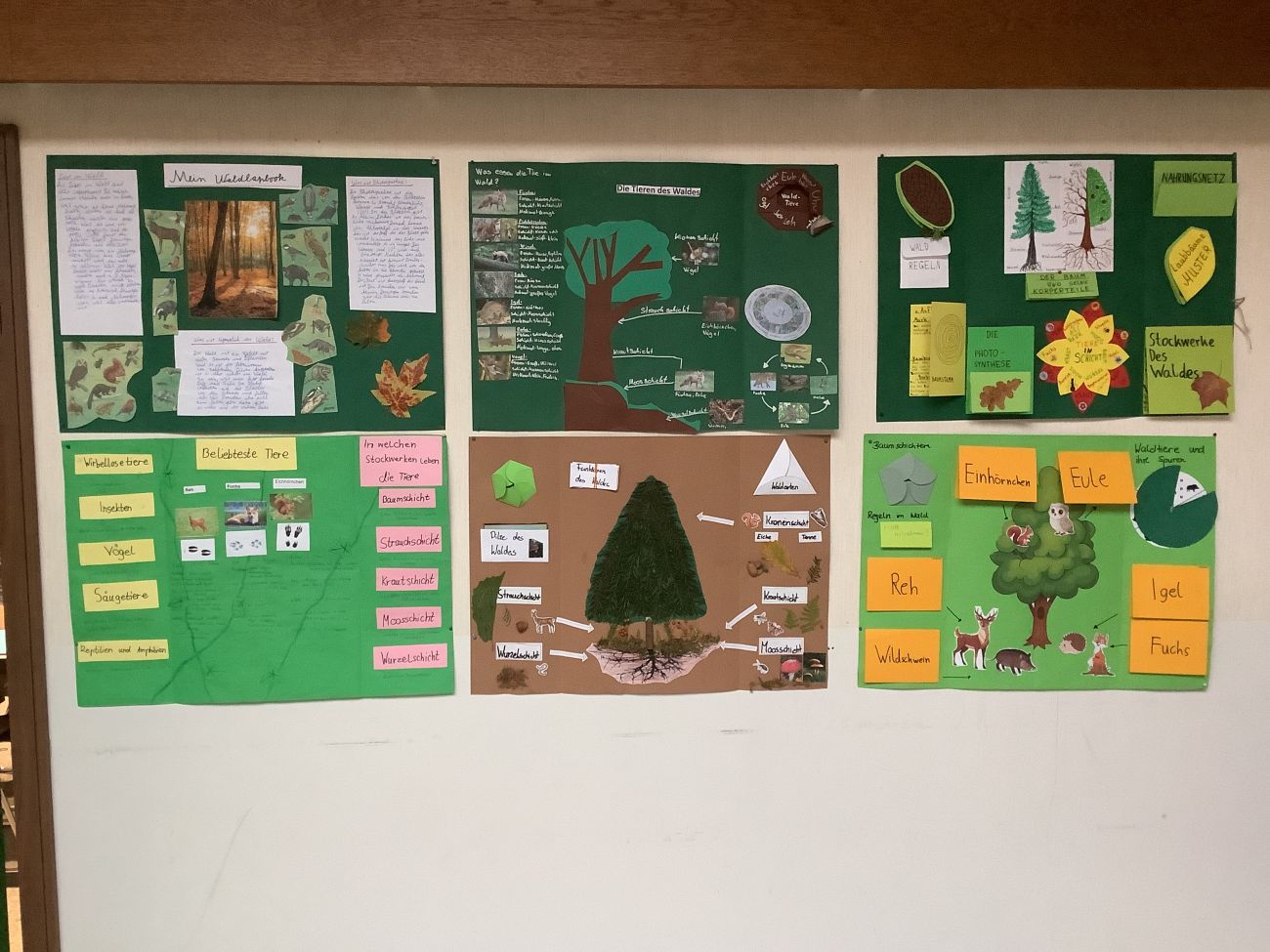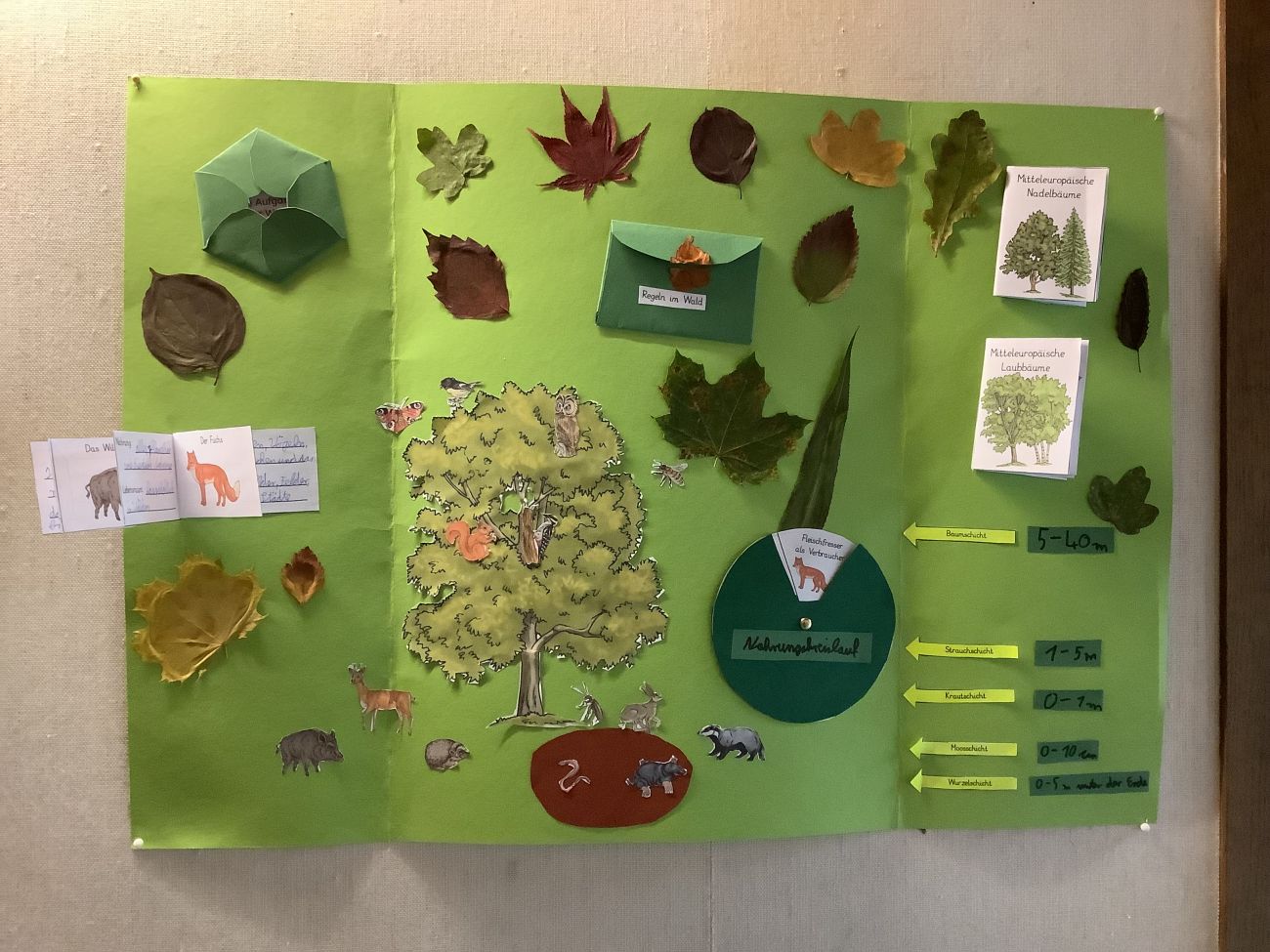 Die Schülerinnen und Schüler der 6. Klassen haben sich im VU-Unterricht mit dem Thema Wald beschäftigt. Um ihr Wissen kreativ festzuhalten, gestalteten sie eigene Lapbooks mit Informationen zu Pflanzen, Tieren und der Bedeutung des Waldes. Die Ergebnisse der Klasse 6b können nun vor ihrem Klassenzimmer bewundert werden – ein toller Abschluss der Unterrichtseinheit!