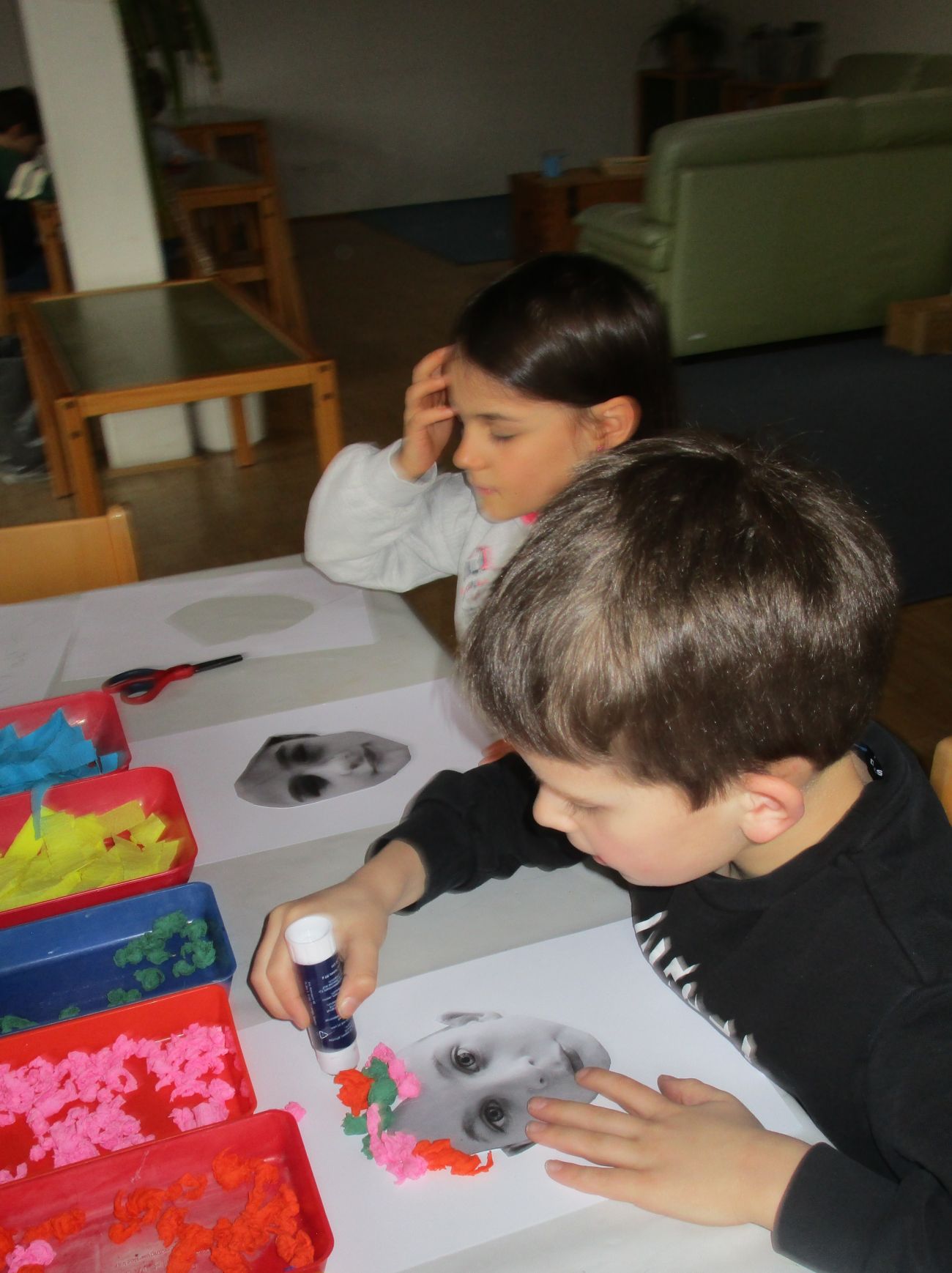 Nach dem Fotoshooting wurden unsere Bilder ausgeschnitten und aus Krepppapier „Bobbels“ gemacht.