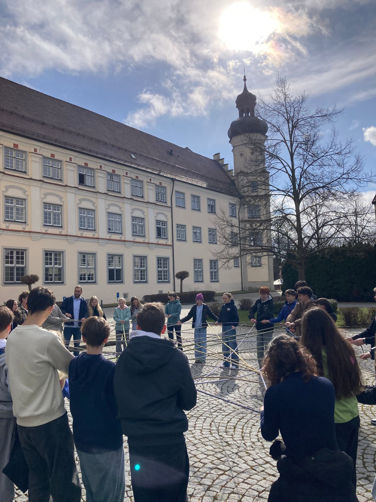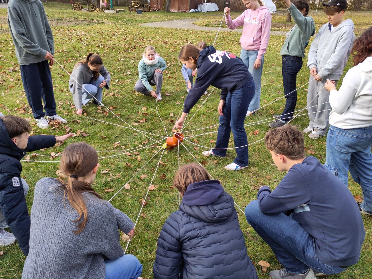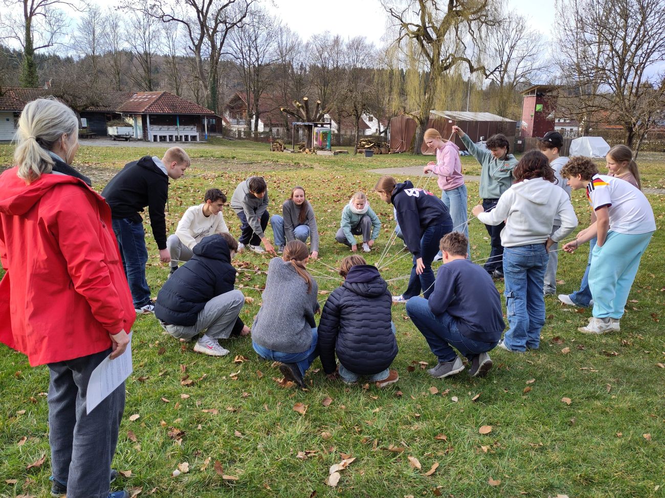 Ein gemeinsamer Schwerpunkt beider Klassen war die Stärkung der Sozialkompetenz durch Teamübungen. In verschiedenen Aufgaben – teilweise auch an der frischen Luft – waren Geschicklichkeit, Vertrauen, gute Kommunikation und kreative Problemlösestrategien gefragt. In anschließenden Reflexionsrunden überlegten die Schülerinnen und Schüler gemeinsam: