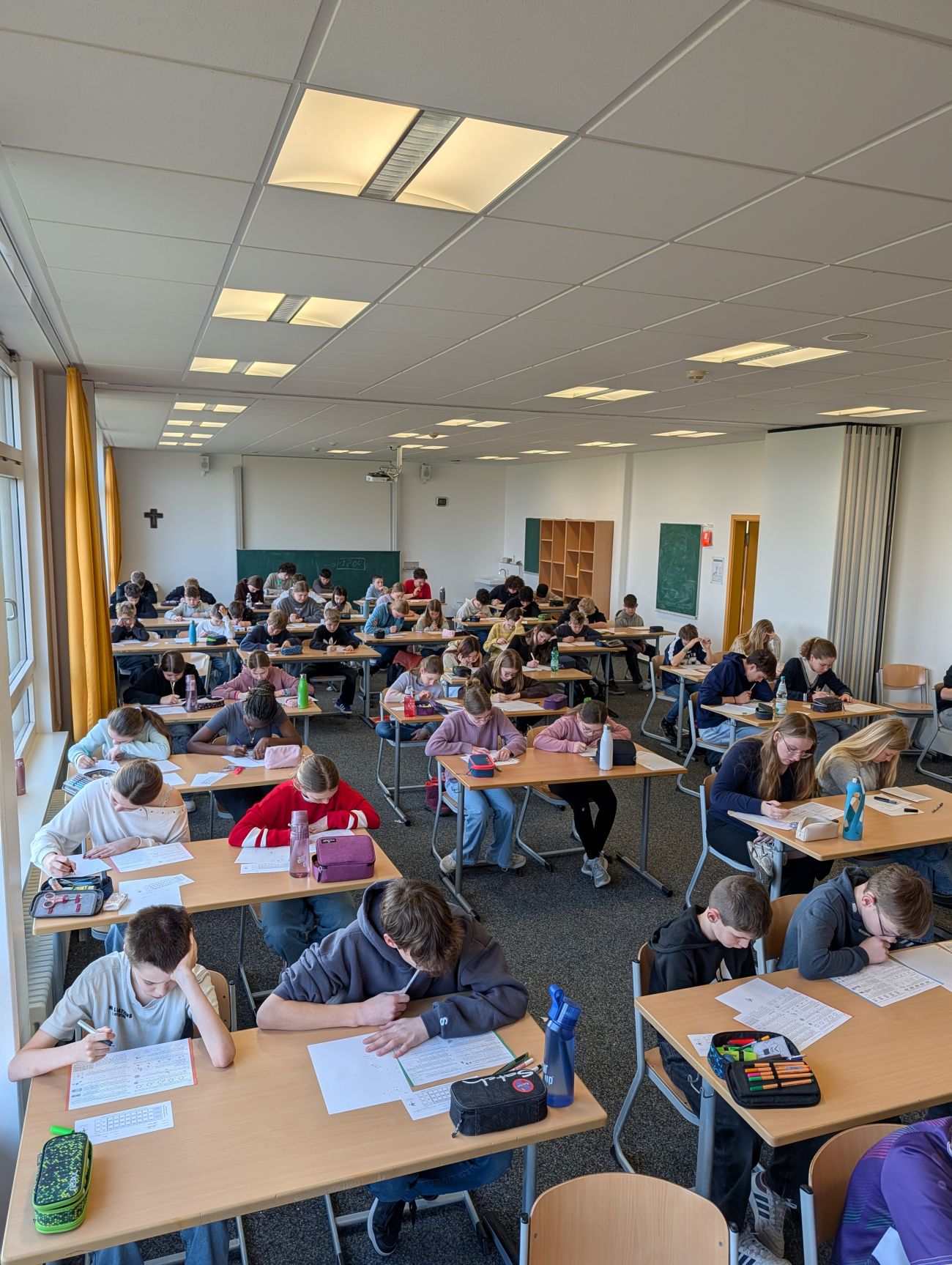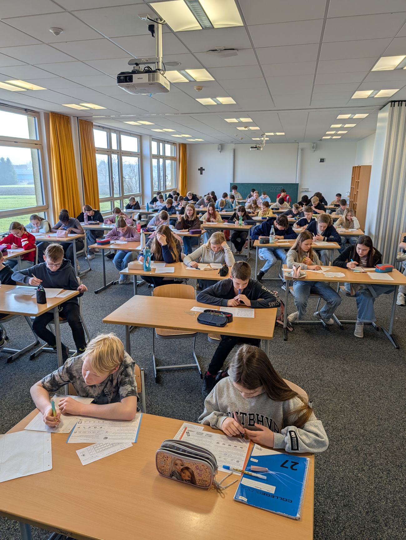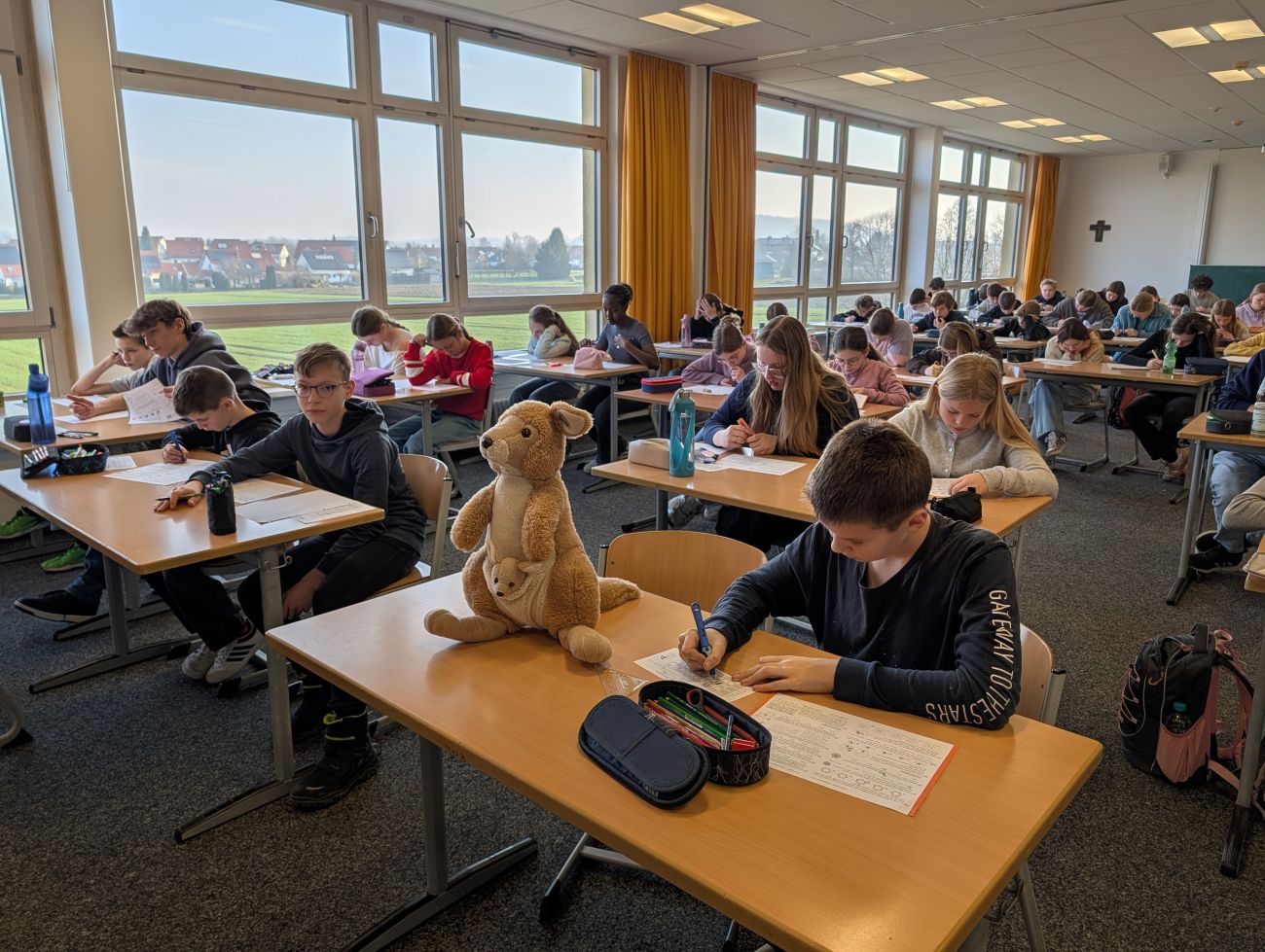 Am Donnerstag, 19. März 2026, nahmen 75 Schülerinnen und Schüler des Gymis am Känguru-Wettbewerb der Mathematik teil und stellten sich kniffligen Aufgaben. Organisiert und durchgeführt wurde er von Volker Kammerer und Ute Darlau, das Startgeld wurde vom Schulwerk bezahlt. Der Känguru-Wettbewerb ist ein landesweiter Mathematik-Wettbewerb, der logisches Denken, Problemlösefähigkeiten und räumliches Vorstellungsvermögen fördert. Ziel der Veranstaltung ist, den Spaß an Mathematik zu wecken, eigenständiges Denken anzuregen und Begeisterung für mathematische Aufgaben zu fördern. Die Bekanntgabe der Ergebnisse und somit die Aushändigung der Urkunden und Preise erfolgt am Ende des Schuljahres.